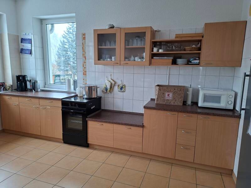 Unser Kindergarten verfügt über schöne, große und helle Räume aufgeteilt in 3 große Gruppenräume, 1 großen Essenraum für alle Kinder, 1 Raum, der gerade zum Rückzugs- und Sinnesraum (Snoezelen) umgestalten wird, 2 Bäder, 1 mittelgroße Kinderküche, in der evtl. in diesem Jahr noch saniert wird, 1 große Küche, Garderoben, 1 kleiner Lagerraum und das Büro.