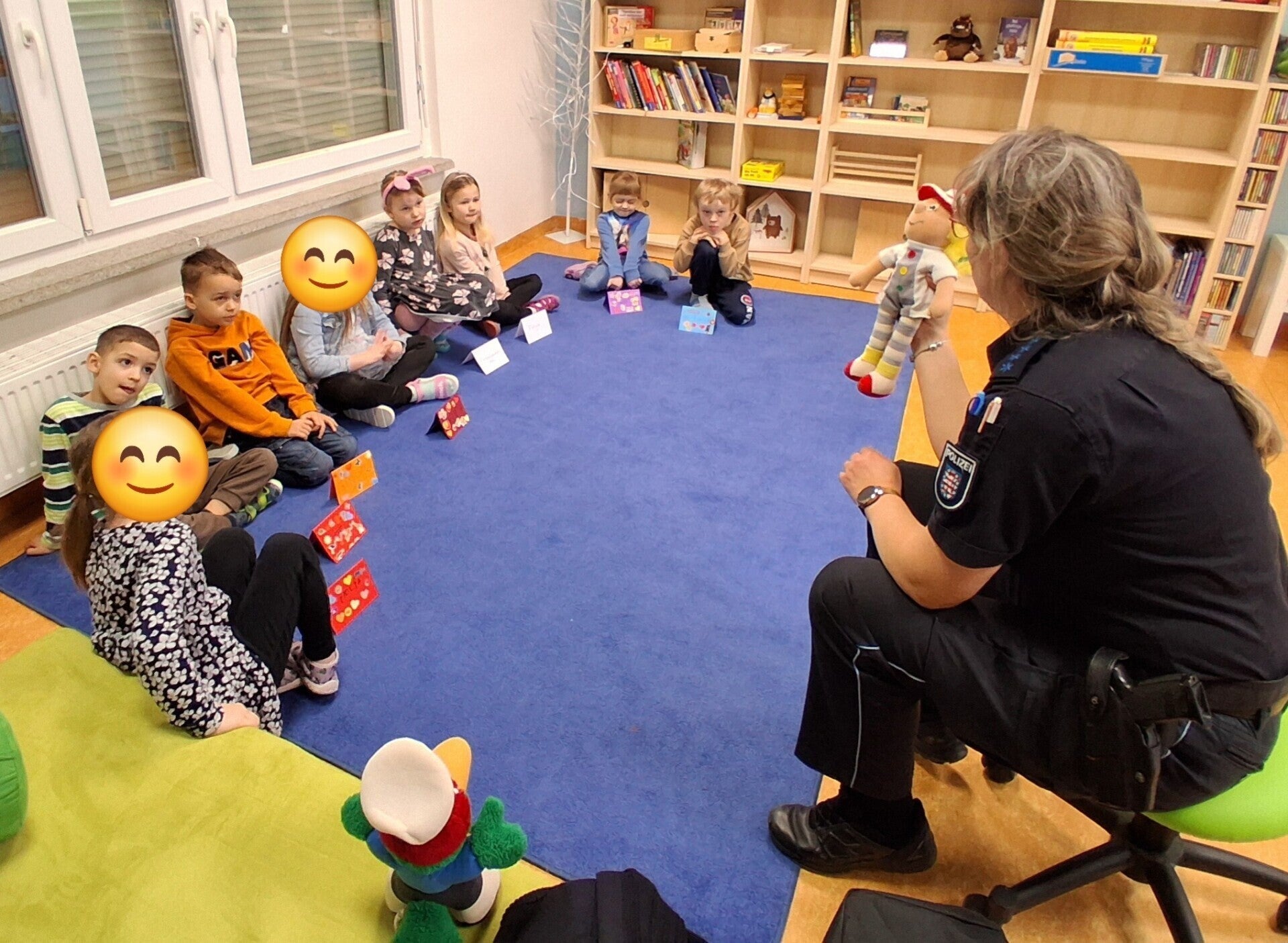 Am Montag, den 02. März hat uns die Polizistin Frau Grund besucht und den Kindern spielerisch die wichtigsten Regeln im Straßenverkehr erklärt, wie wir richtig die Straße überqueren, das richtige Verhalten an einer Ampel und einem Fußgängerüberweg und wir haben schon einige Verkehrsschilder kennengelernt. Die Kinder haben super mitgemacht, viele wussten schon ganz viel. Frau Grund hat auch darauf hingewiesen, wie wichtig es ist, außer seinem vollständigen Namen auch die vollständige Adresse zu wissen.